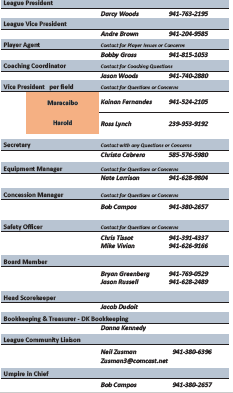 League Community Liaison: Neil Zusman 941-380-6396